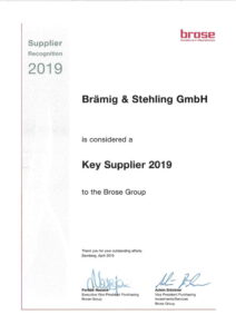 Brämig & Stehling ist ausgezeichnet als Lieferant des Jahres 2019 der Brose Group.